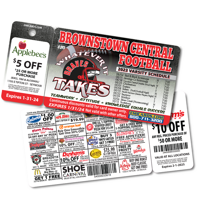 Our fundraising discount cards have been trusted by coaches, booster clubs and athletic directors for over 25 years!