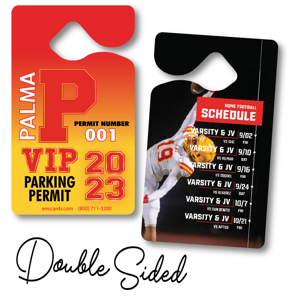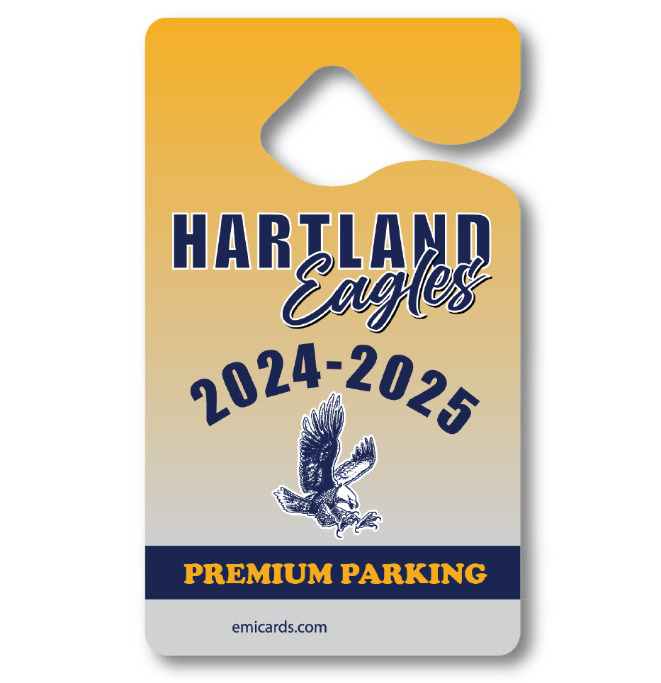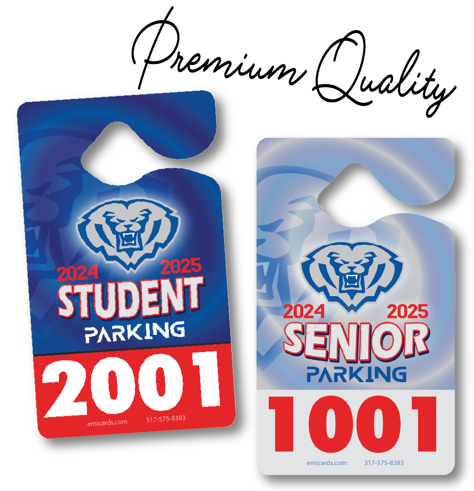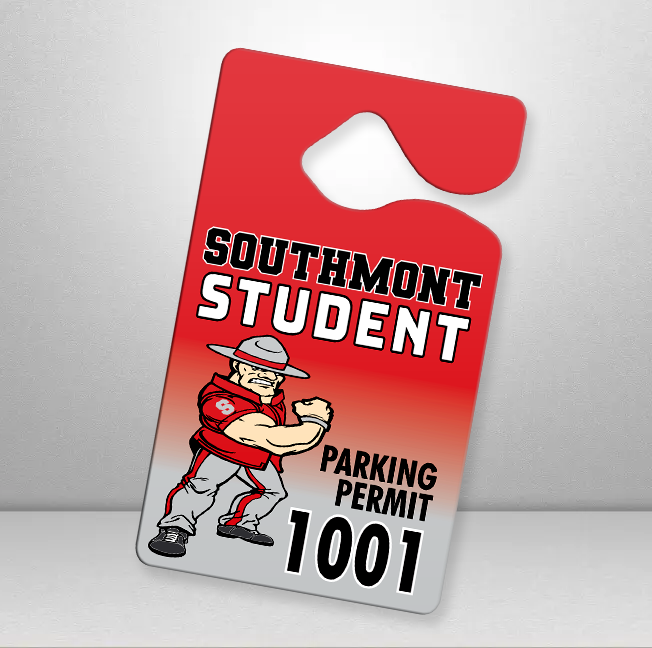 Shop our collection of Parking Tag Designs that we customize with your school’s name, logo, and mascot: