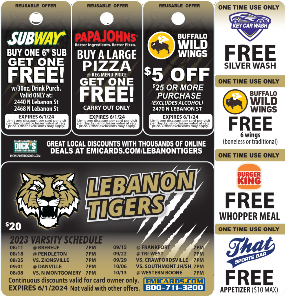 Support Lebanon Tigers Football while saving money at places you already shop every day.